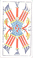 Cette carte évoque un succès professionnel, une grande réussite ou des déplacements professionnels. En amour, le sept de bâton annonce un très bon amant, une profonde réalisation dans le domaine sexuel. |