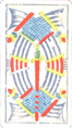 Le neuf d'épée à l'envers indique une crise intellectuelle et des remises en questions qui ont du mal à se faire. Cet arcane peut aussi évoquer un mental laissé à l'abandon qui perd de sa vivacité. |